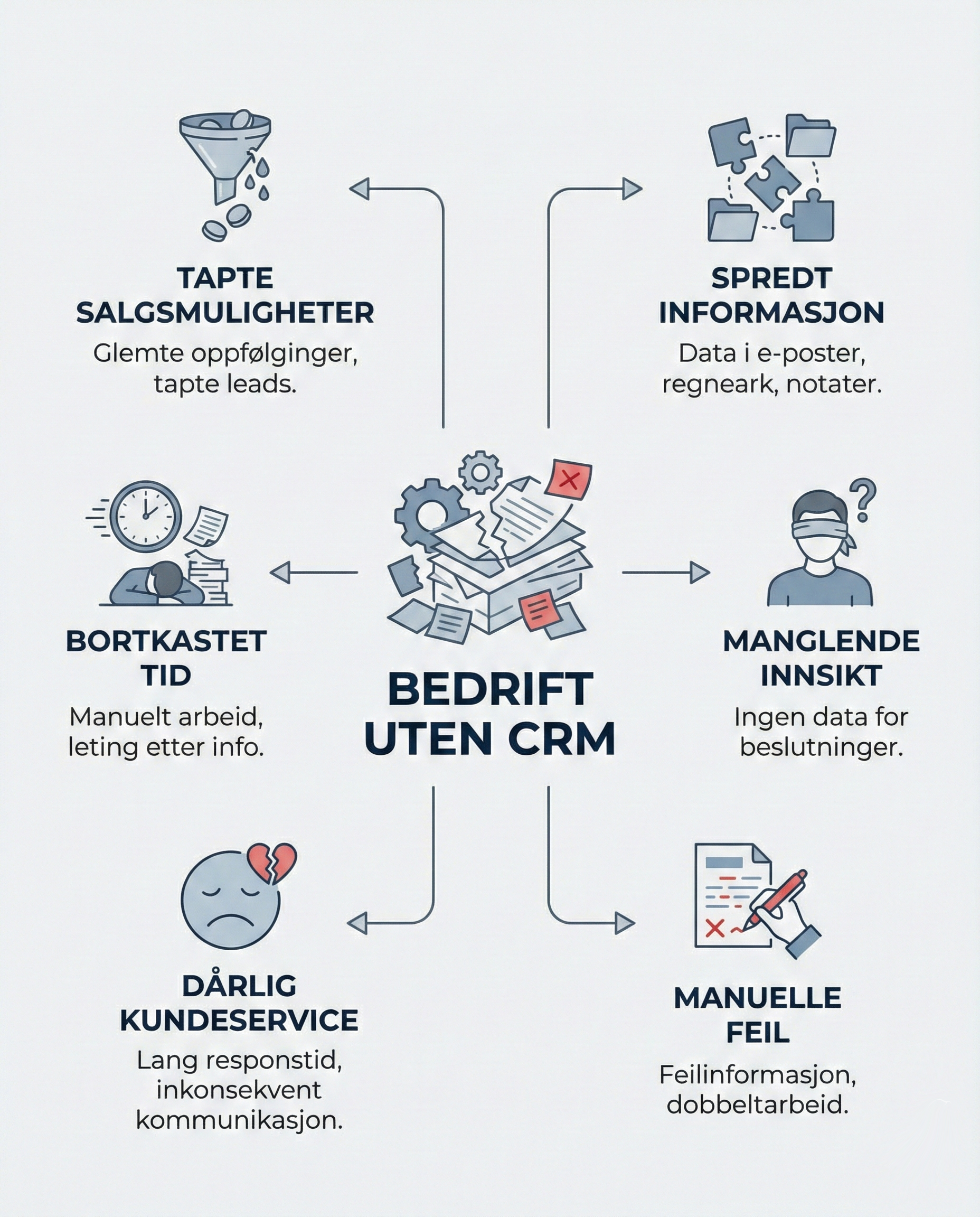 Et effektivt CRM system fungerer som et sentralt nervesenter for alle kundeorienterte aktiviteter i organisasjonen. Det gir ansatte i salg, markedsføring, kundeservice og ledelse tilgang til oppdatert og nøyaktig kundeinformasjon i sanntid. Denne felles datakilden sikrer at alle har samme forståelse av hver kundes situasjon og behov.